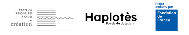 Avec le soutien du Fonds Régnier pour la création, du Fonds de dotation Haplotès et de la Fondation de France